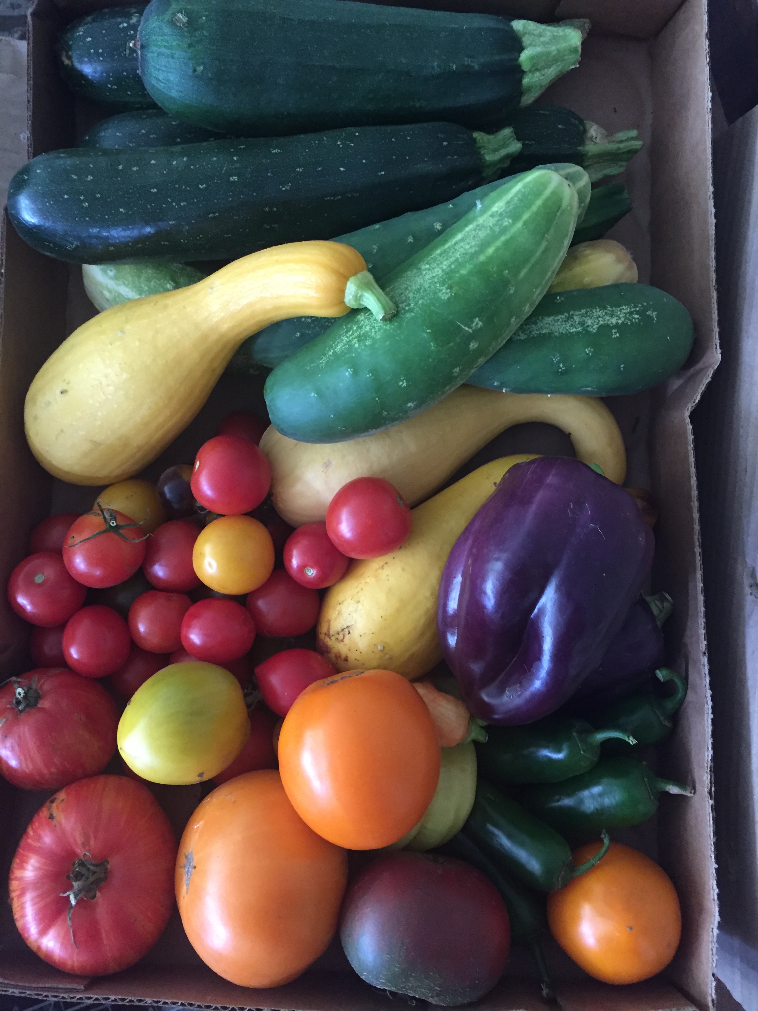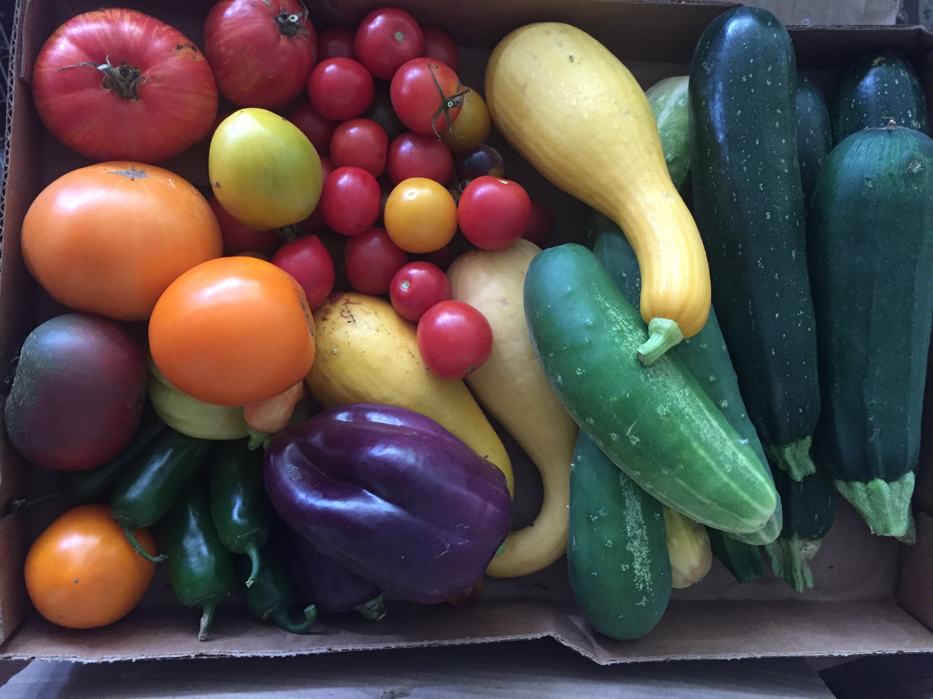 The contents will change as we go through the growing season. Pictures of the harvest are posted on our Instagram: